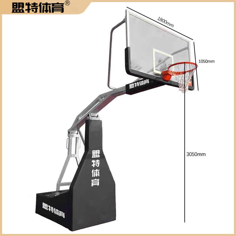 对于固定式篮球架,其基础固定方式直接决定了篮球架的稳定性。如前文所述,地埋式篮球架需要在安装地点挖掘合适深度和大小的坑洞,将篮球架的立柱放入坑中,然后用混凝土进行浇筑固定。在浇筑混凝土时,要确保混凝土的质量和浇筑的密实度,以保证篮球架的立柱能够与地面牢固结合。液压篮球架则通常通过预埋件与地面连接,预埋件在安装前需根据篮球架的尺寸和重量进行合理设计和安装,确保预埋件能够承受篮球架在使用过程中产生的各种作用力。对于移动式篮球架,其稳定性主要依赖于底部的配重设计。一般来说,移动式篮球架的底部会配备水箱或沙袋等配重装置,在使用前需将配重装置加满水或沙袋,以增加篮球架的整体重量,防止篮球架在使用过程中发生倾倒。同时,要定期检查配重装置是否完好,如有漏水或沙袋破损的情况,应及时进行修复或更换。